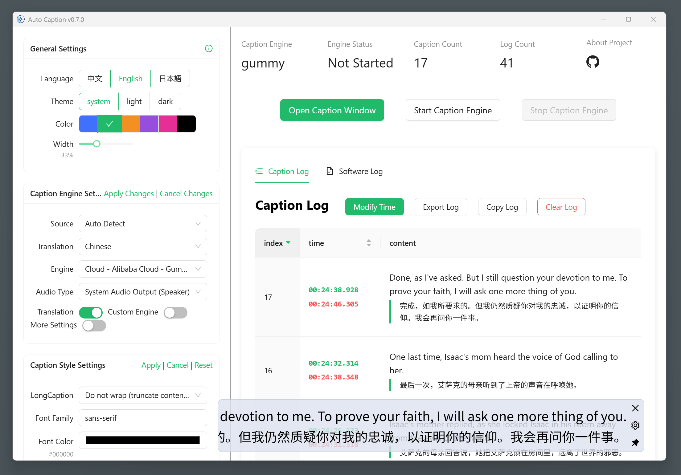 Version 0.7.0 has been released, imporving the software interface and adding software log display. The local caption engine is under development and is expected to be released in the form of Python code...